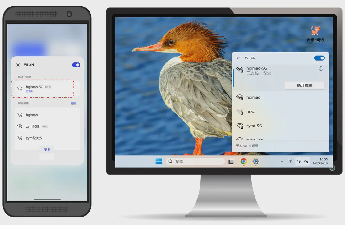 第一步 让电脑与安装【吉猫·晓记】的手机连接同一wifi