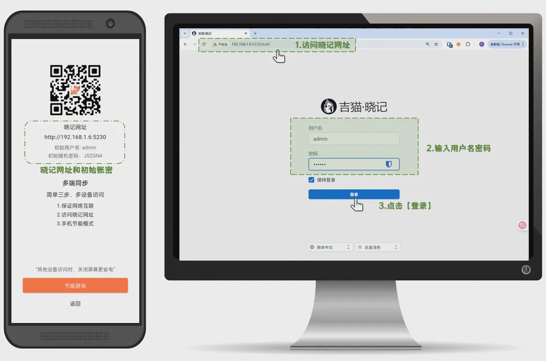 第二步 在电脑上打开浏览器,访问【晓记网址】并完成账密登录
